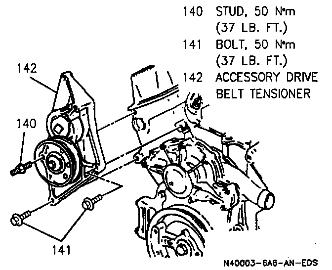 5. Average the three readings. If the average of the three readings is lower than 298 N (67 lbs.) and the belt is within the tensioner's operating range, replace the belt tensioner.