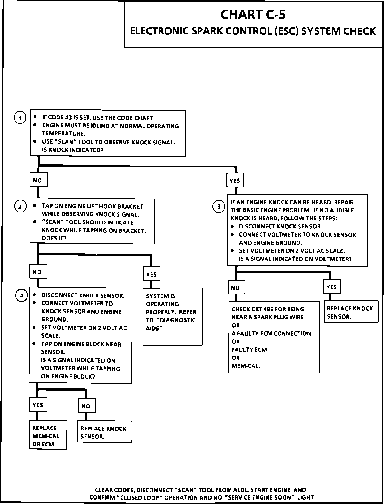 4. This test determines if the knock sensor is faulty or if the ESC portion of the Mem-Cal is faulty. If it is determined that the Mem-Cal is faulty, be sure that it is properly installed and latched into place. If not properly installed, repair and retest.