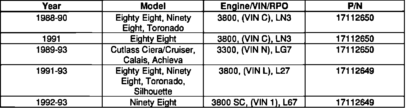 ALL 1988-93 W/3800 (VIN C, L, 1) AND 3300 (VIN N) ENGINES