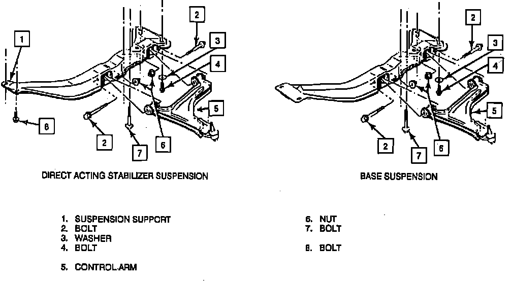 2. Disconnect stabilizer bar at lower control arm and control arm support.