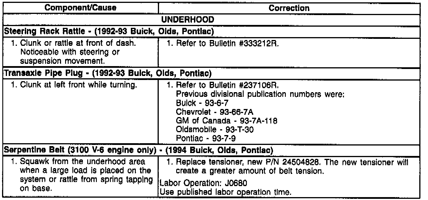 Steering Rack Rattle - (1992-93 Buick, Oldsmobile, Pontiac)