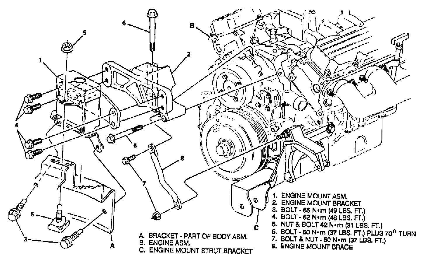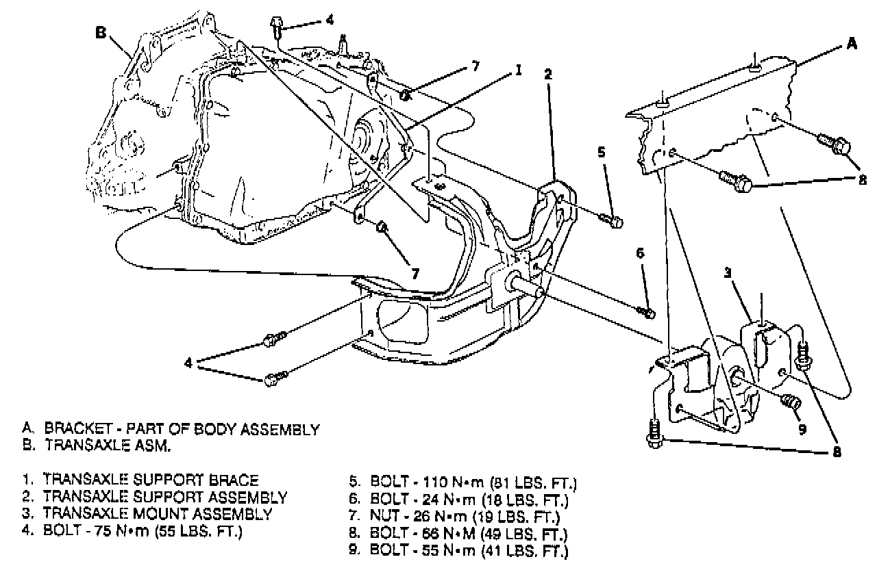 4. Transaxle mount to body bolts.