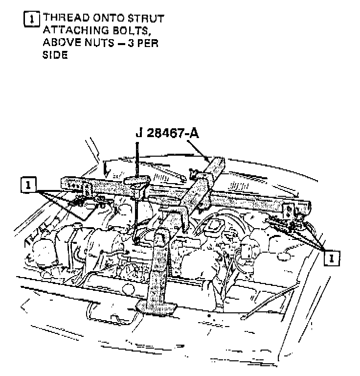 22. Remove Engine Support Fixture J 28467-A.