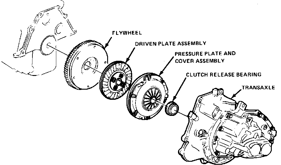 7. Clean pressure plate and flywheel mounting surfaces. Inspect bearing retainer outer surface of the transaxle.