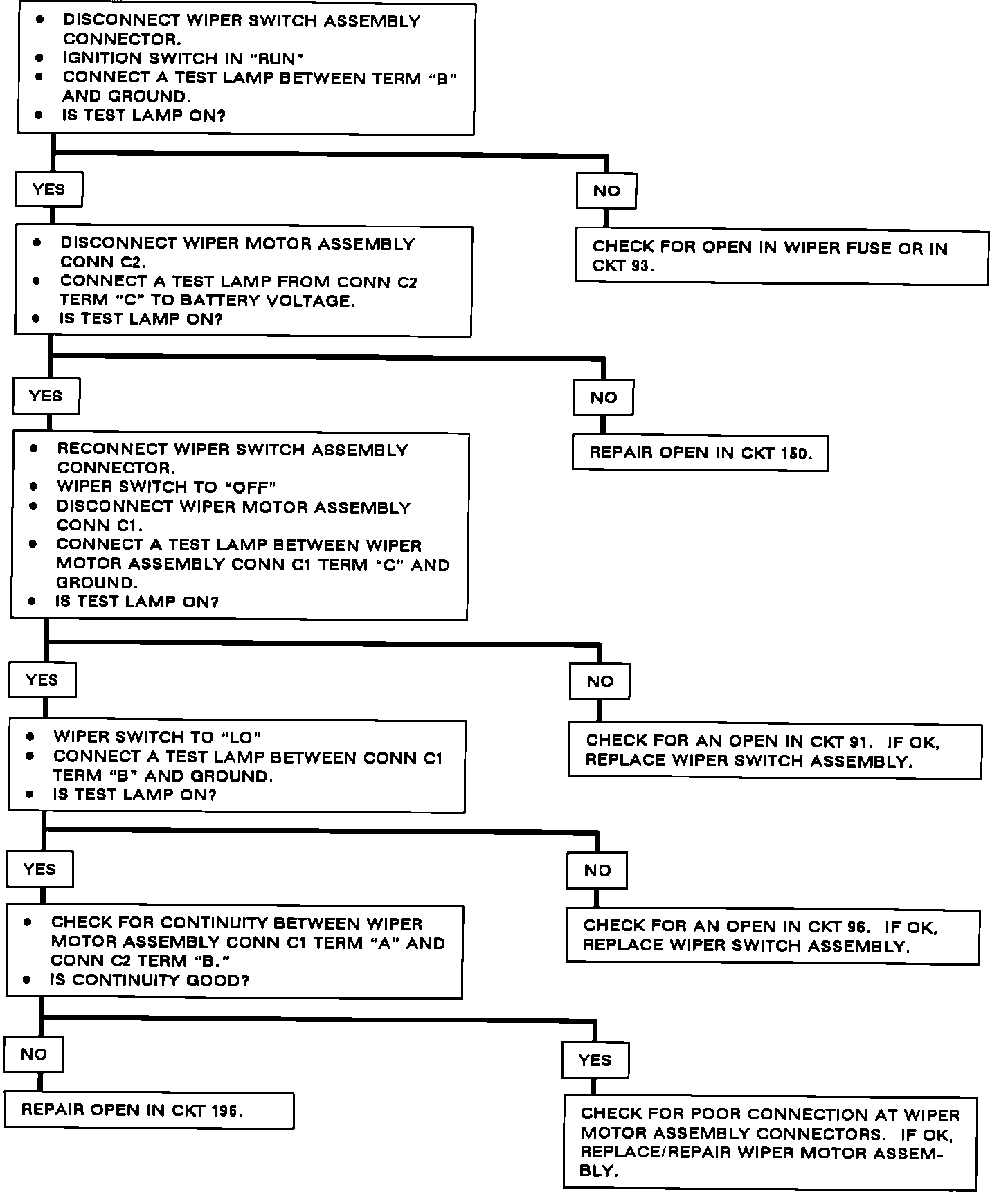 Chart #1 - Wipers Do Not Operate In Any Mode: