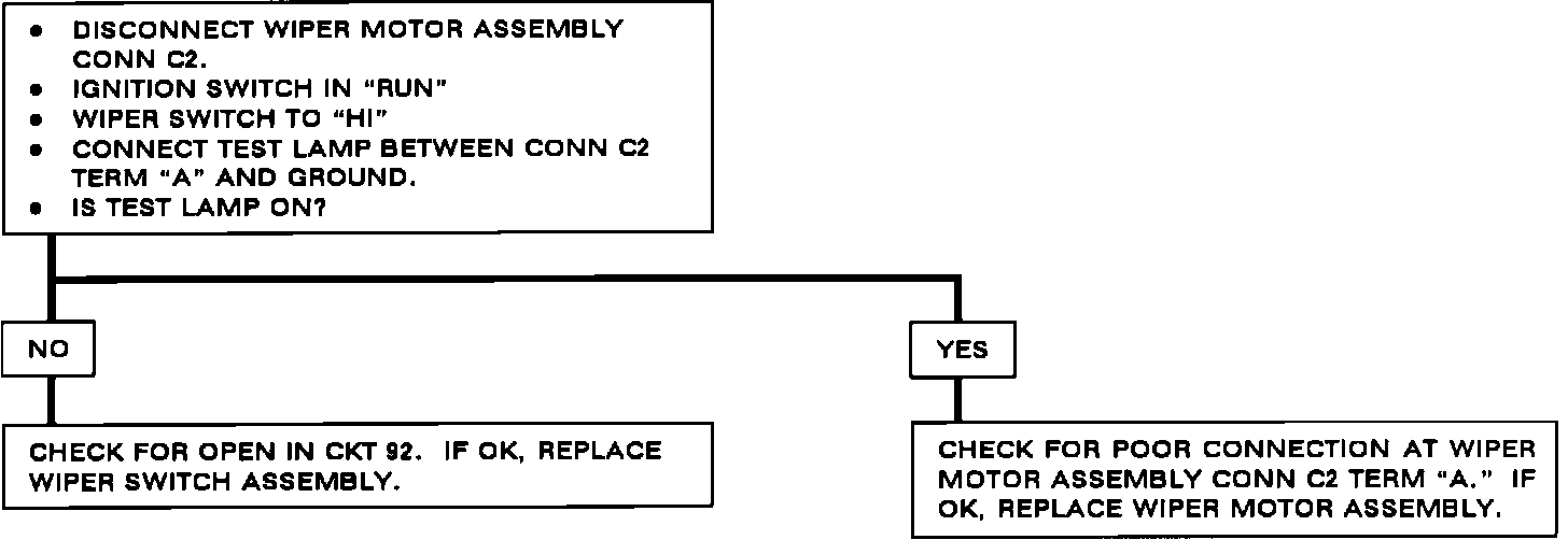 Chart #3 - Wipers Run At Low Speed Only Or Wipers Cycle In And Out Of "Park" In "HI" (High Speed Inoperative):