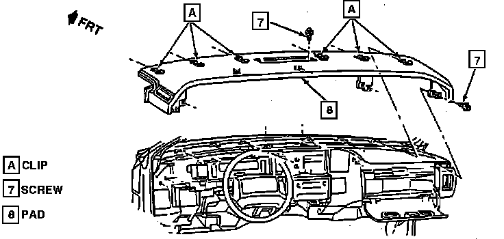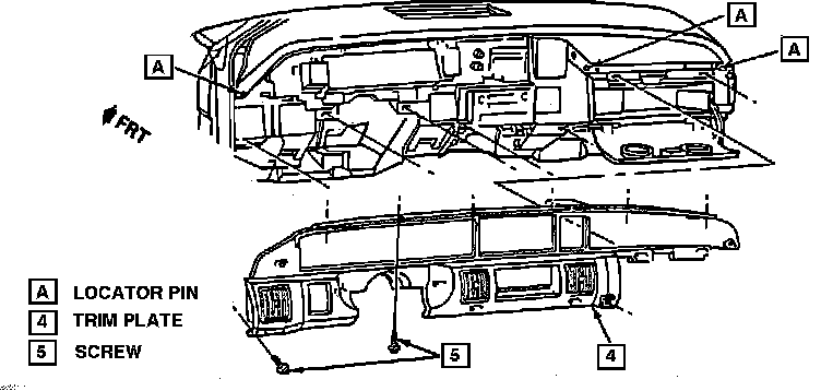25. Remove instrument panel carrier from windshield lower frame flange, then unsnap and pull away.