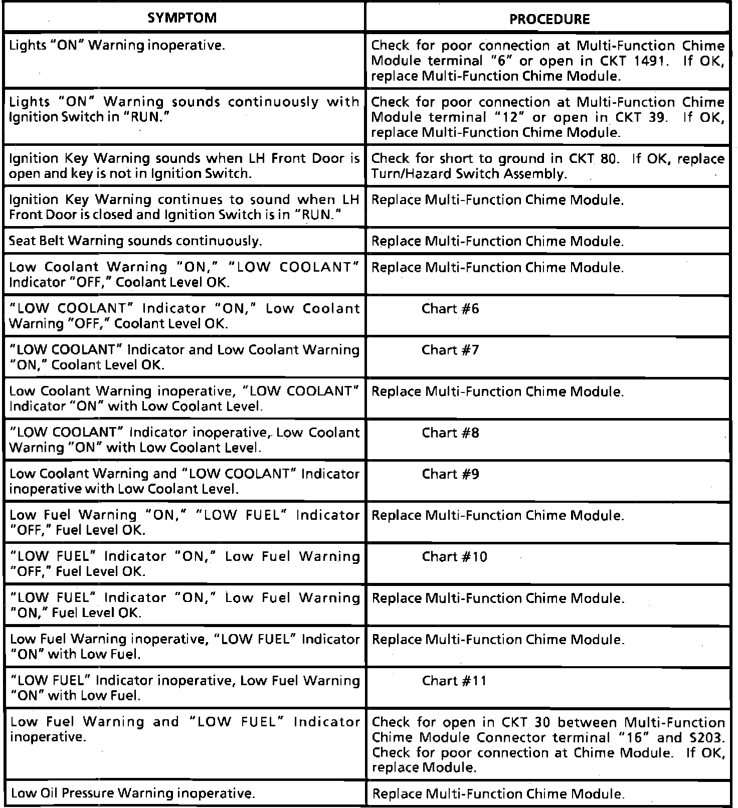 Audible Warning (with Reminder Package) - Symptom Chart: