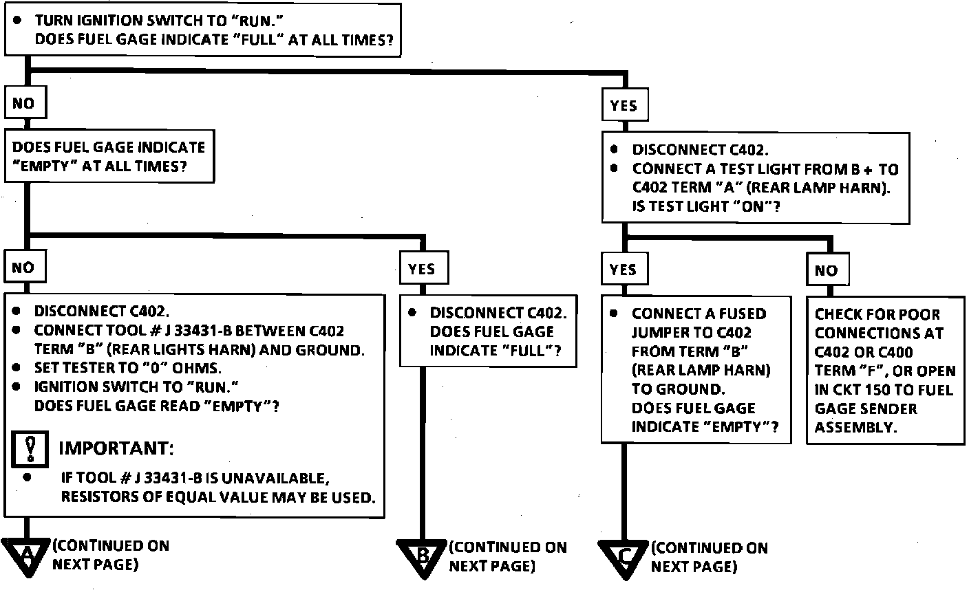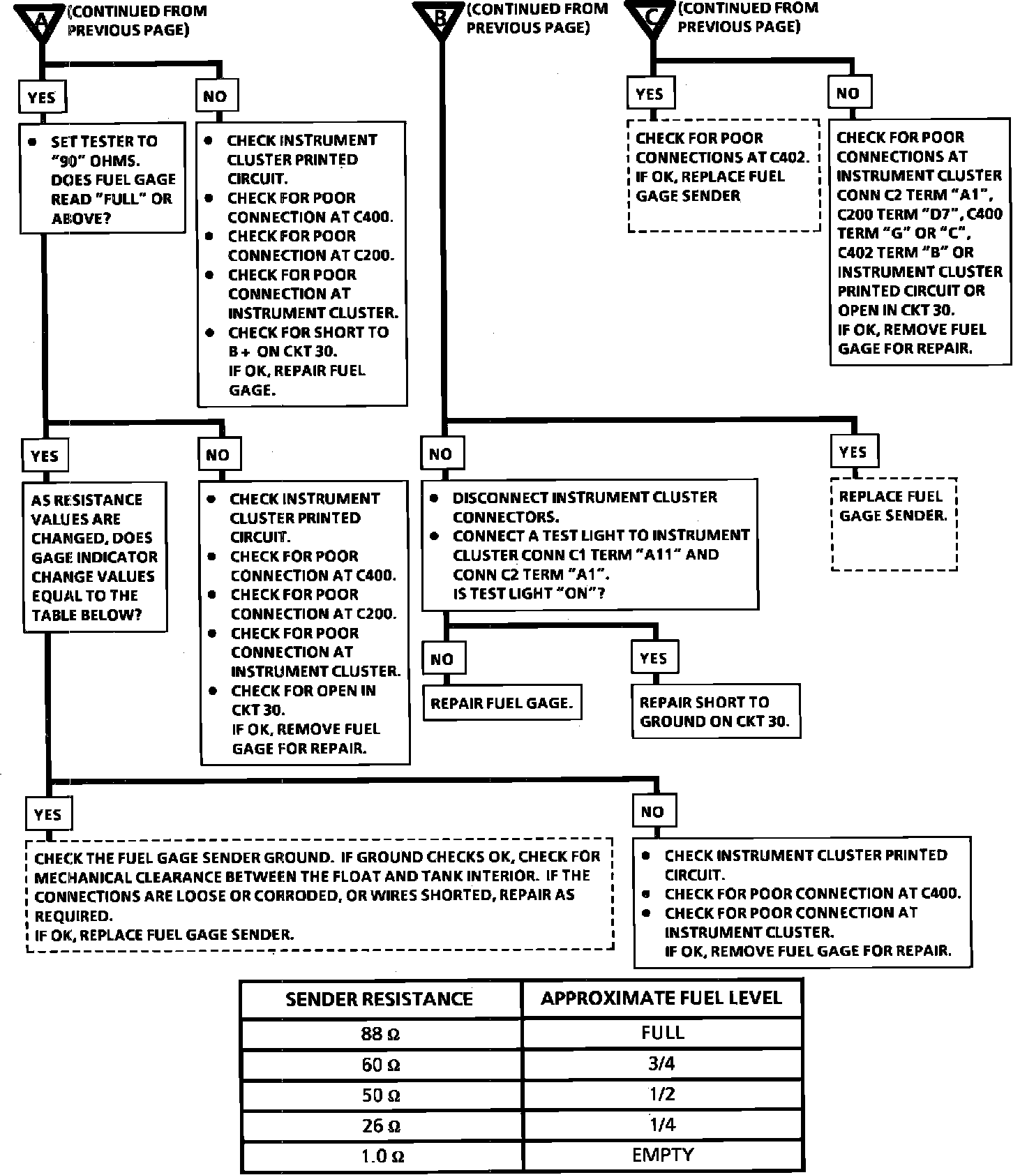 Chart #1 - Fuel Gage Inoperative Or Inaccurate: