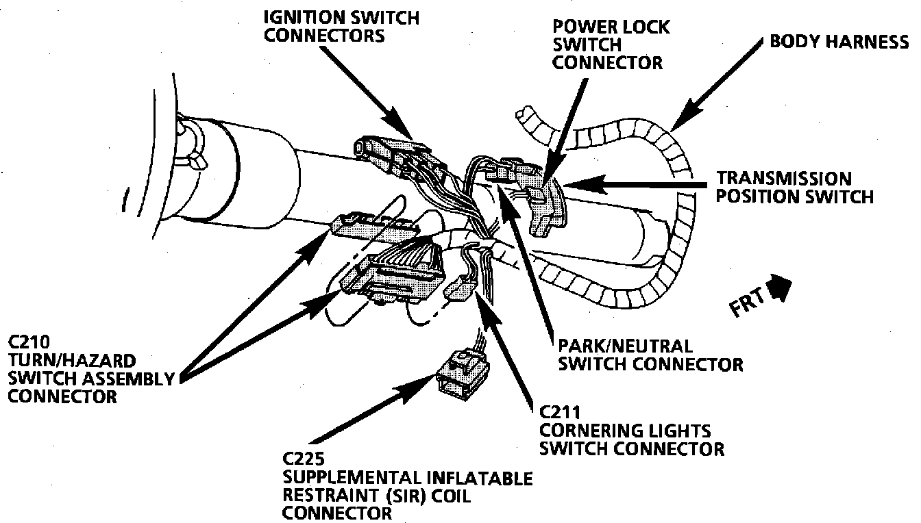 Component Location View. RH Side of Steering Column:
