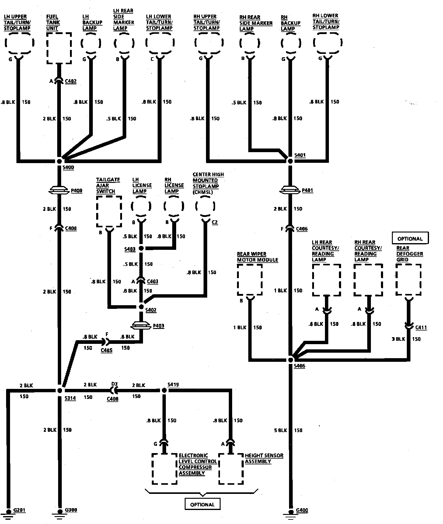 Ground Distribution (G201, G300 & G400: Rear Lights, ELC, Rear Defogger, Rear Wiper Motor Module, Fuel Tank, & Tailgate Ajar Switch):