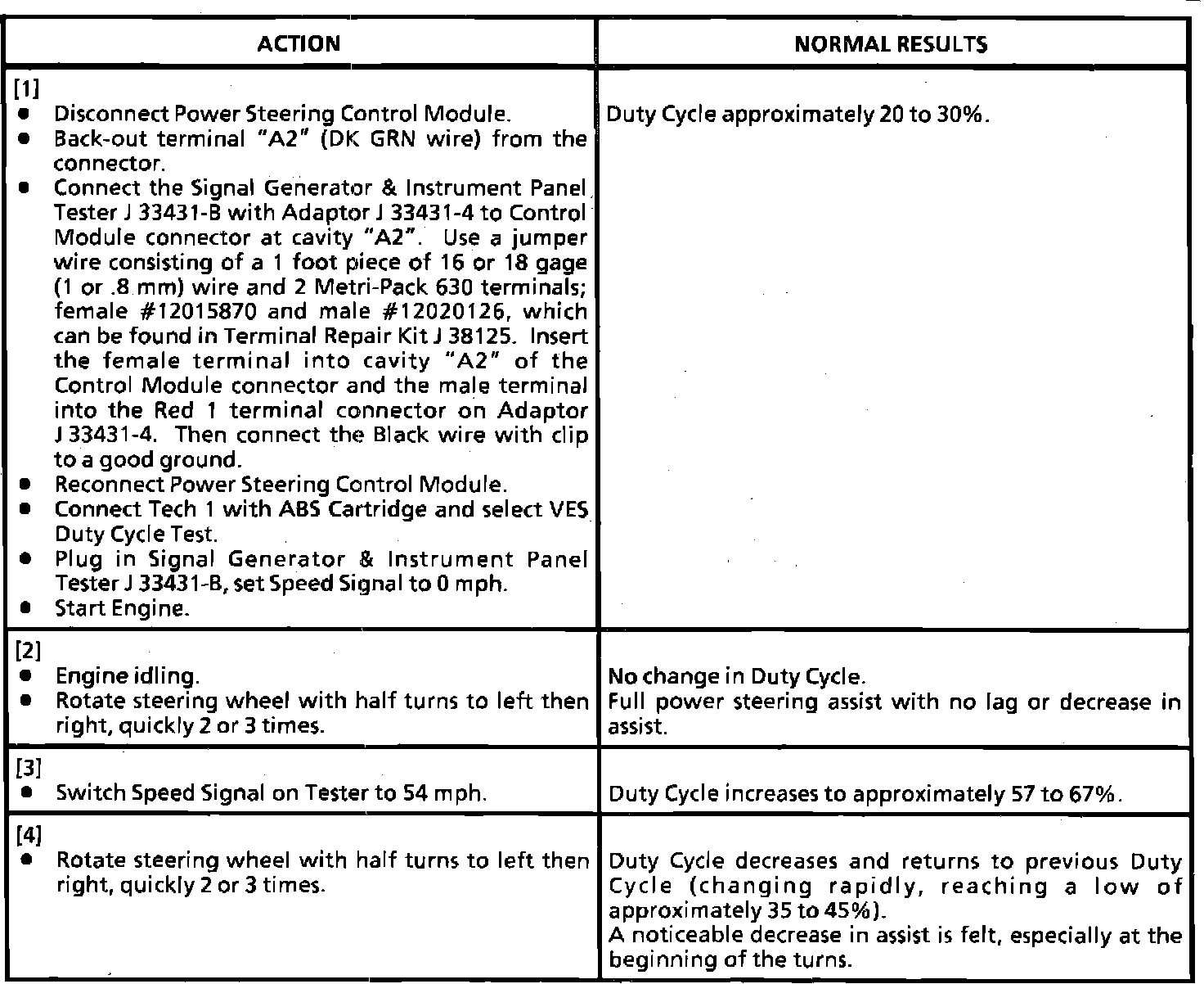 Variable Effort Steering - System Check Using Signal Generator & Instrument Panel Tester: