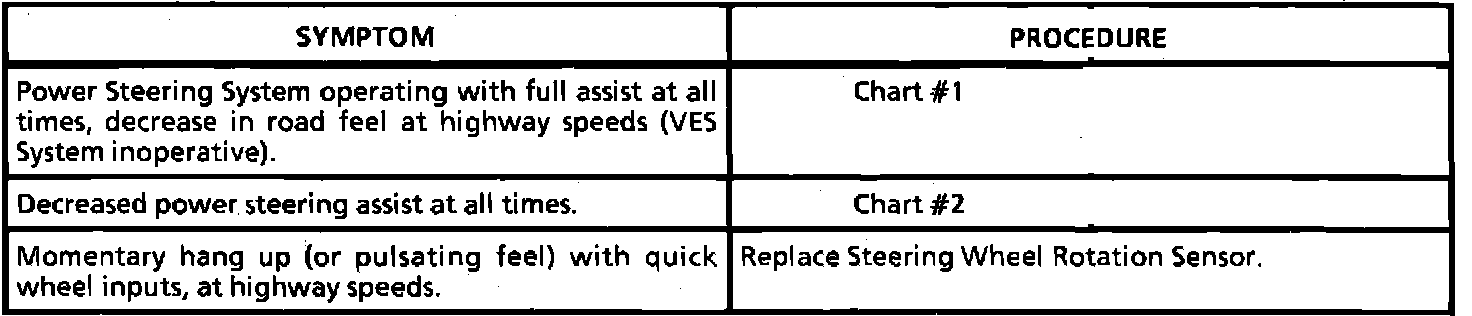 Variable Effort Steering - Symptom Chart:
