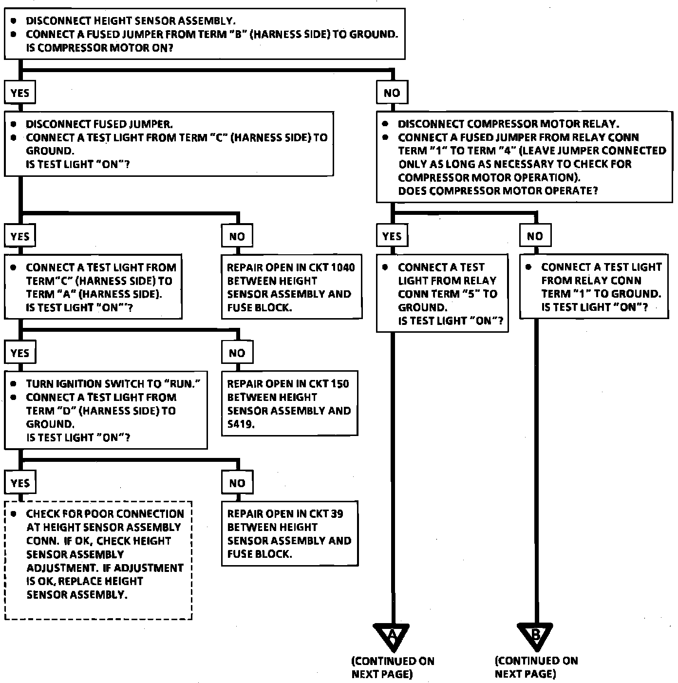Chart #1 - Compressor Motor Does Not Turn "ON" To Raise Rear Of Vehicle: