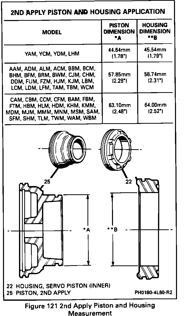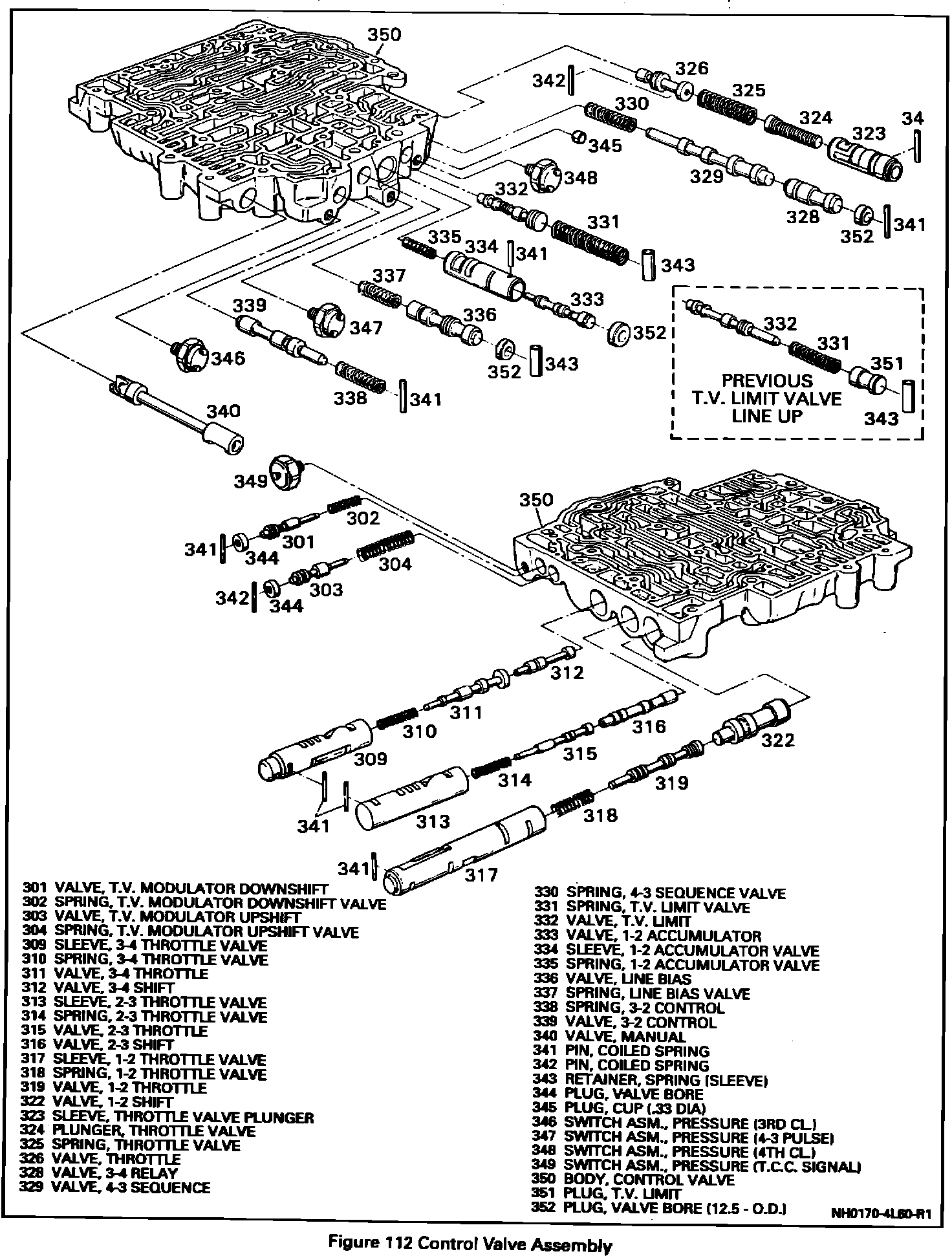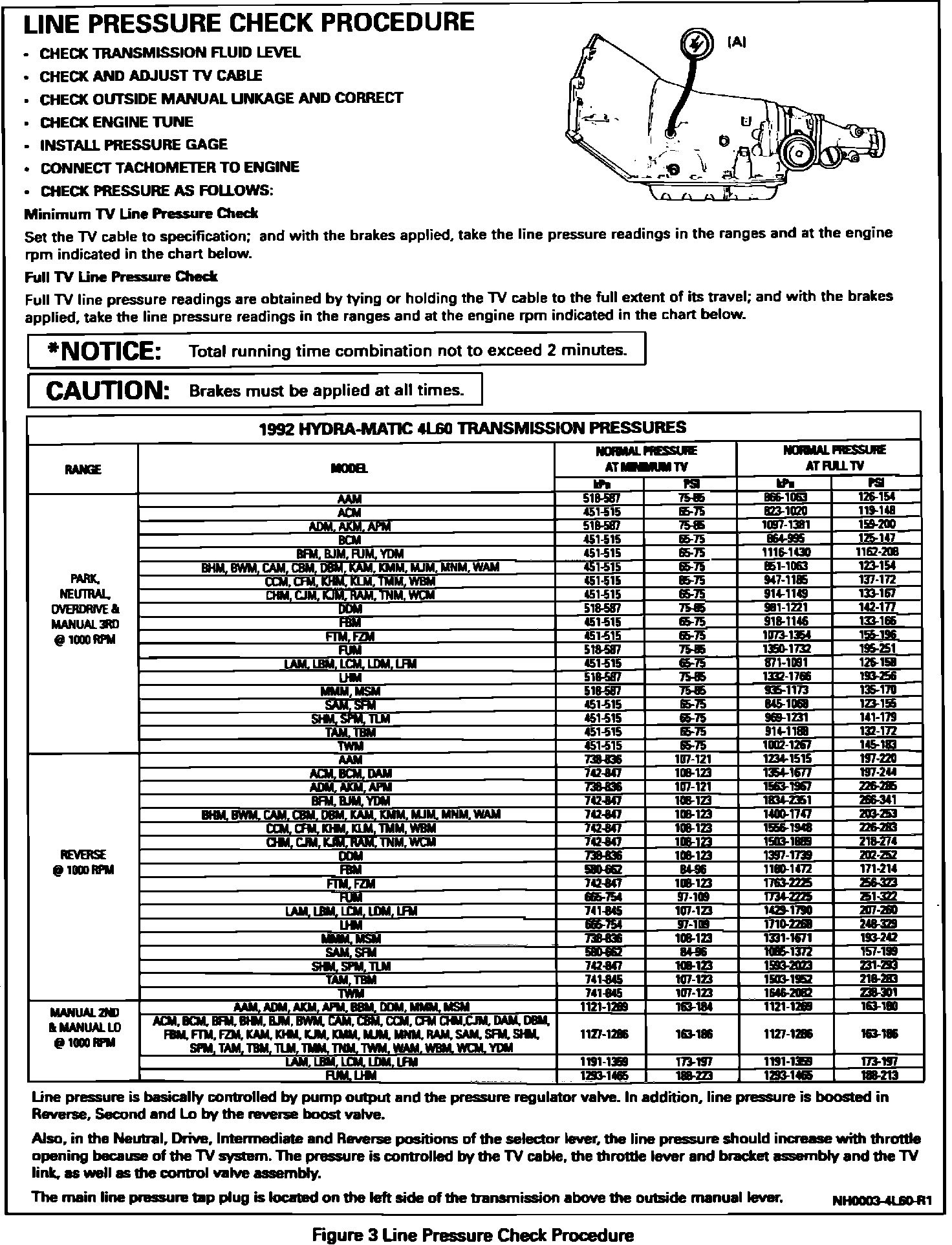 On August 14, 1991 (Julian Date 226), the HYDRA-MATIC 4L60M transmissions were built with a new calibration that changed the TV link line-up. The changes included a new TV limit valve, a new TV limit valve spring, and eliminates the TV limit plug. Also included is an updated line pressure check chart and an updated 2nd apply piston and housing application chart.