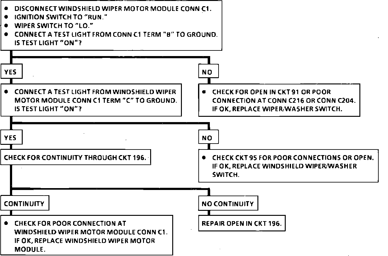 Chart #2 - Wipers Run At High Speed Only (Low Speed Inoperative):