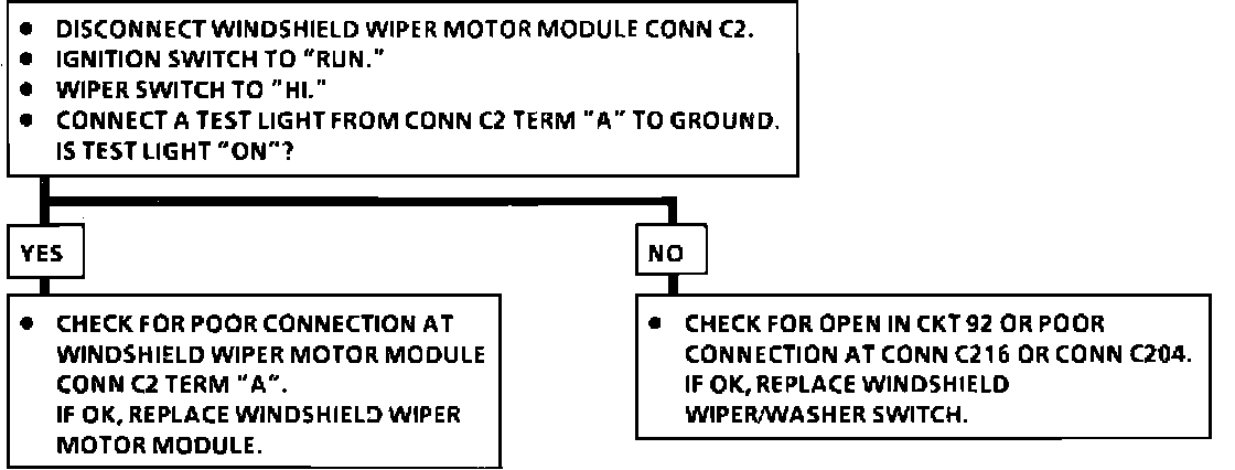 Chart #3 - Wipers Run At Low Speed Only (High Speed Inoperative):