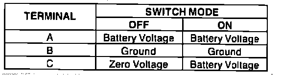 Using a voltmeter, perform tests in Figs. 58, with ignition switch ON. If the voltage is not as specified, replace switch.