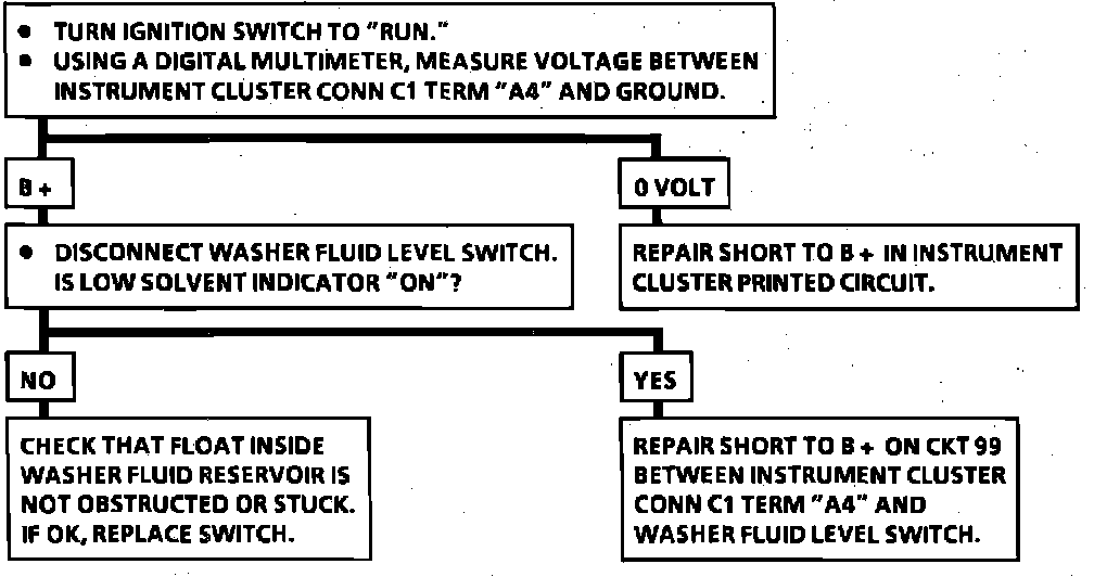 Chart #6 - Low Washer Fluid Indicator "ON", Solvent Level OK: