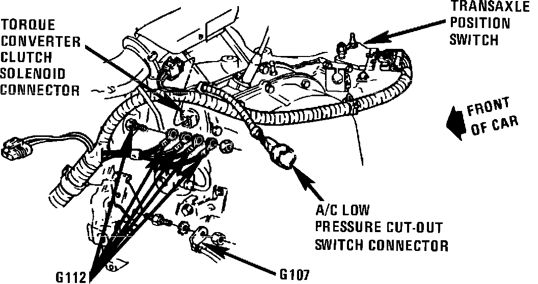 Lower LH front of engine, on transaxle stud