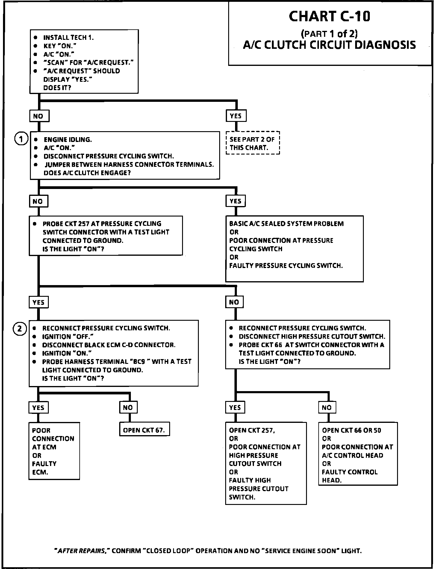 1. Checks A/C low pressure cutout switch.