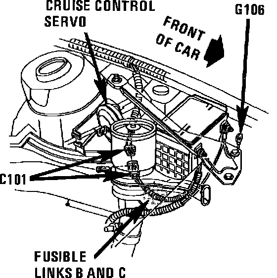 LH front of engine compartment, on radiator support