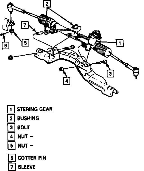 11. Remove steering gear assembly mounting bolts, Fig. 11, then steering gear assembly through left wheel opening.