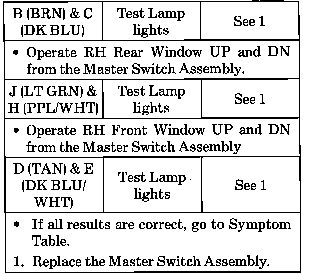 Component Diagnostic Tests - Power Windows
