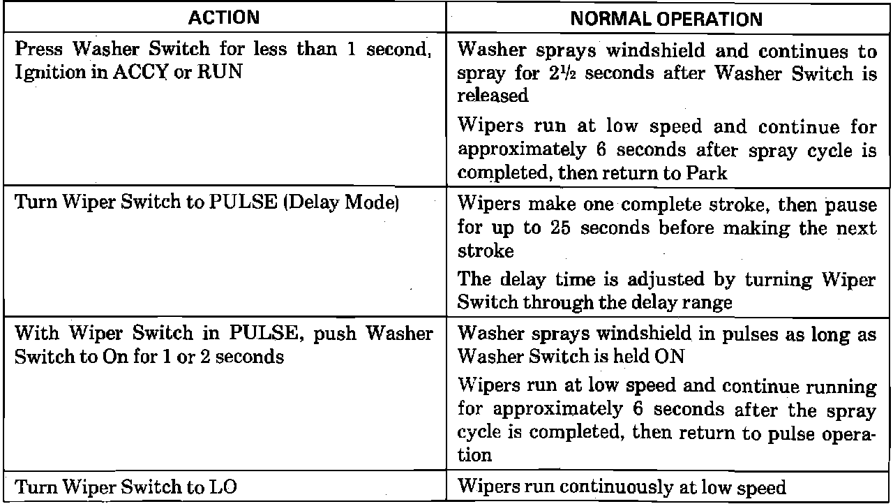 Wiper/Washer System Check (Pulse):