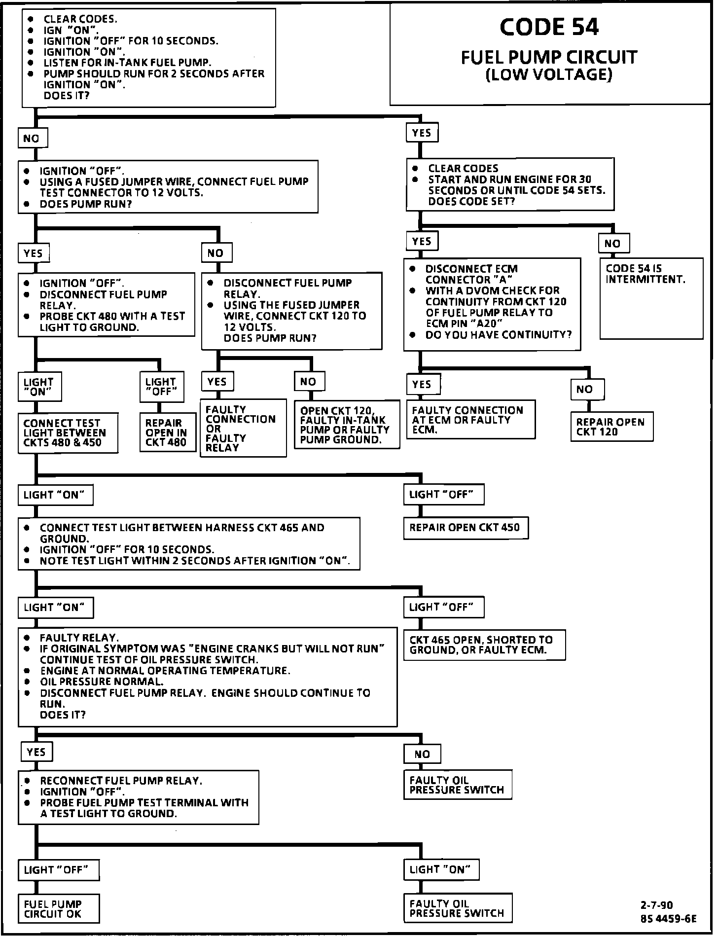 The PCM monitors the status of fuel pump circuit 120. The information is used to compensate fuel delivery based on system voltage. This signal is also used to determine if the fuel pump relay is defective or if fuel pump voltage is lost while engine is running. There should be about 12 volts on circuit 120 for 2 seconds after the ignition is turned "ON", and whenever ignition reference pulses are being received by the PCM.