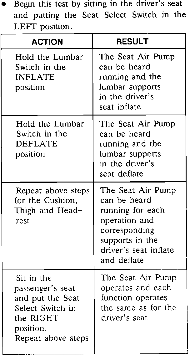 Lumbar Seats System Check:
