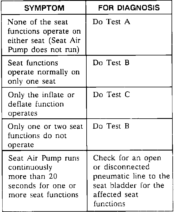 Lumbar Seats Symptom Chart: