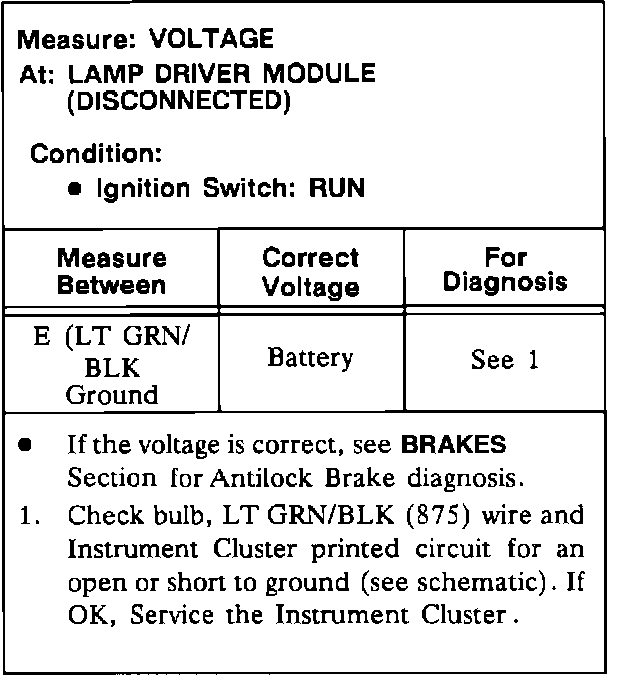 Test N Antilock Indicator Test (If Equipped) (Base Cluster)