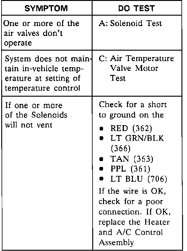 A/C: Air Delivery And Temperature Controls Symptom Chart:
