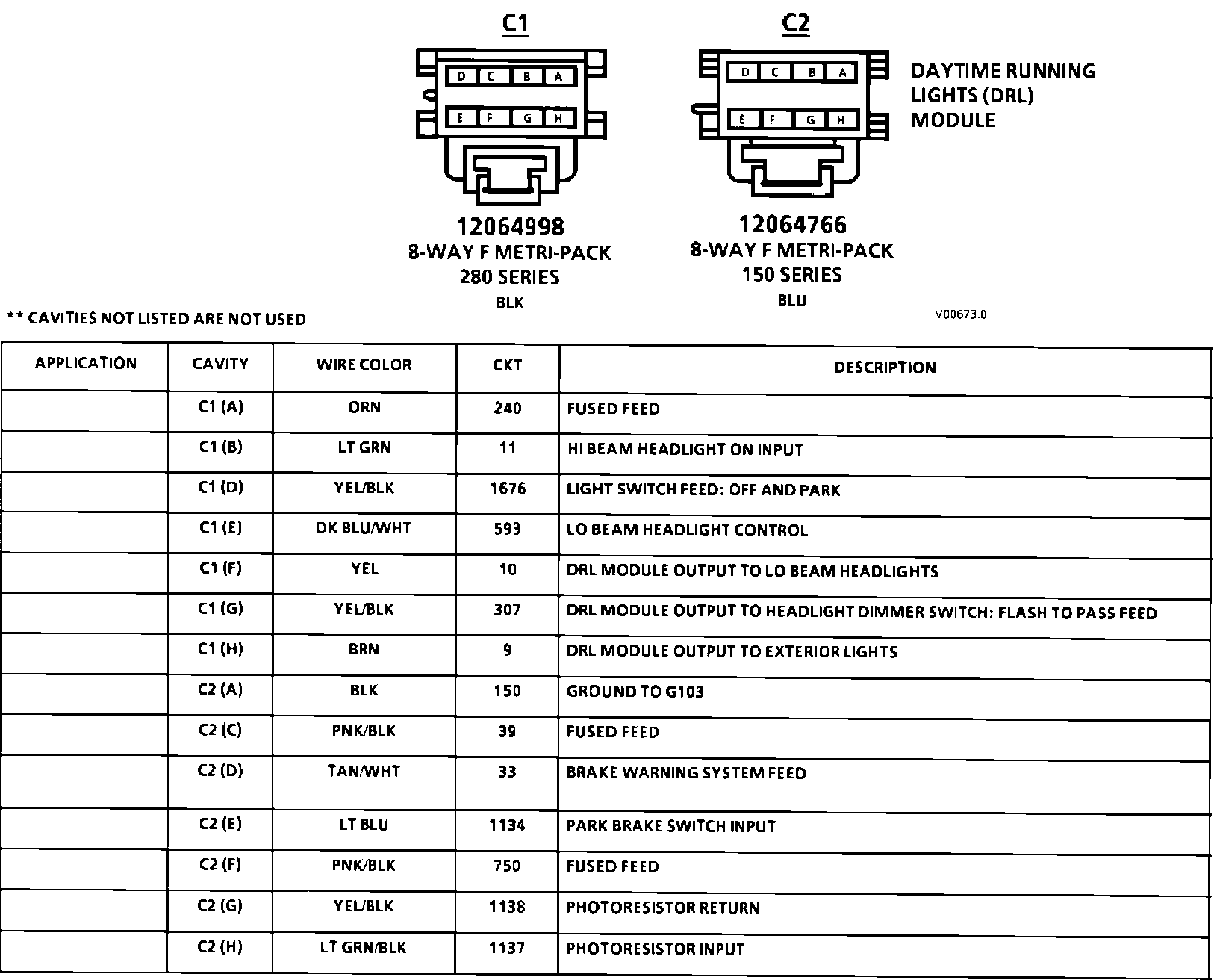 Daytime Running Lights (DRL) Module Connector Face: