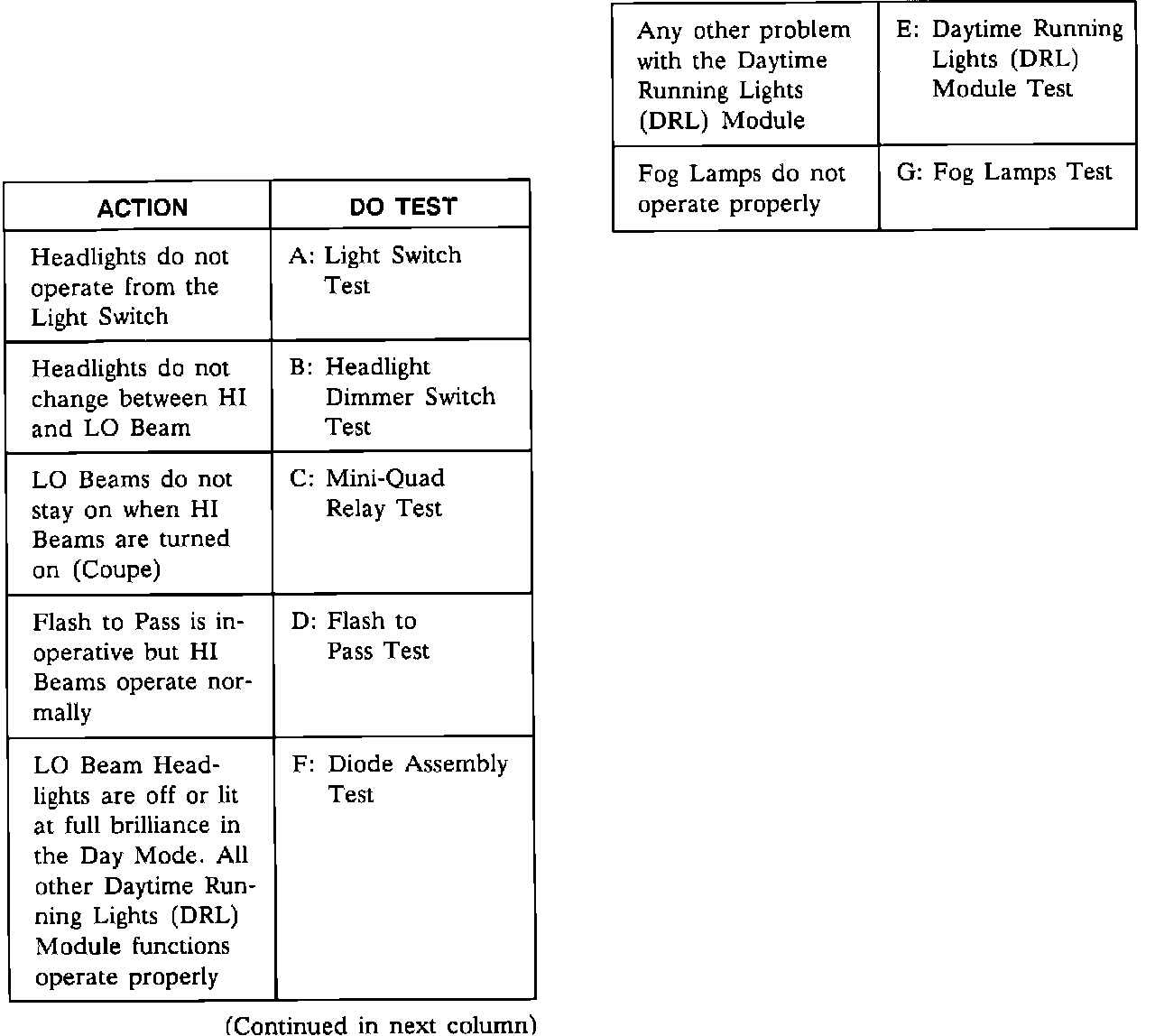 Headlamps Symptom Chart:
