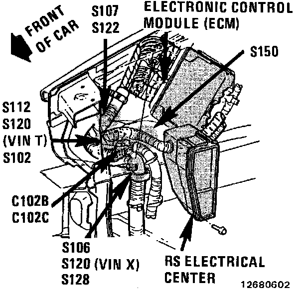 RH Front Of Engine Compartment (VIN T, VIN X similar):