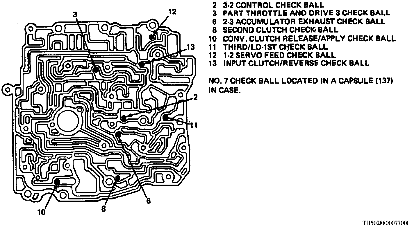 169. Remove pivot pin, roll pin, then the 3-2 coast down valve, spring and bore plug.