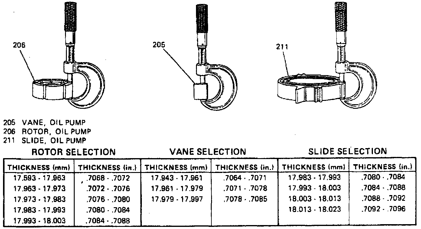 b. Select properly sized replacement as shown. Failure to select properly sized replacements for the rotor, vane or slider will cause damage to transaxle.