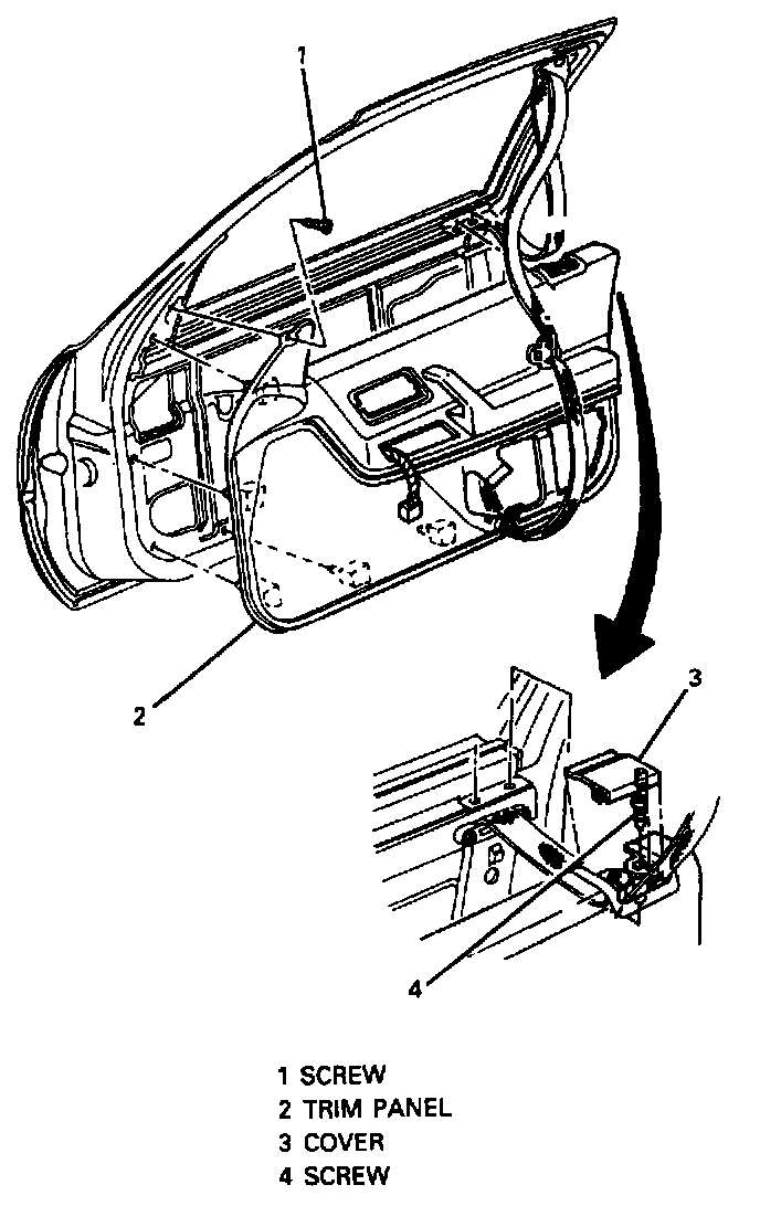 8. Door trim panel using J 24595-C to disengage fasteners from holes in door inner panel.