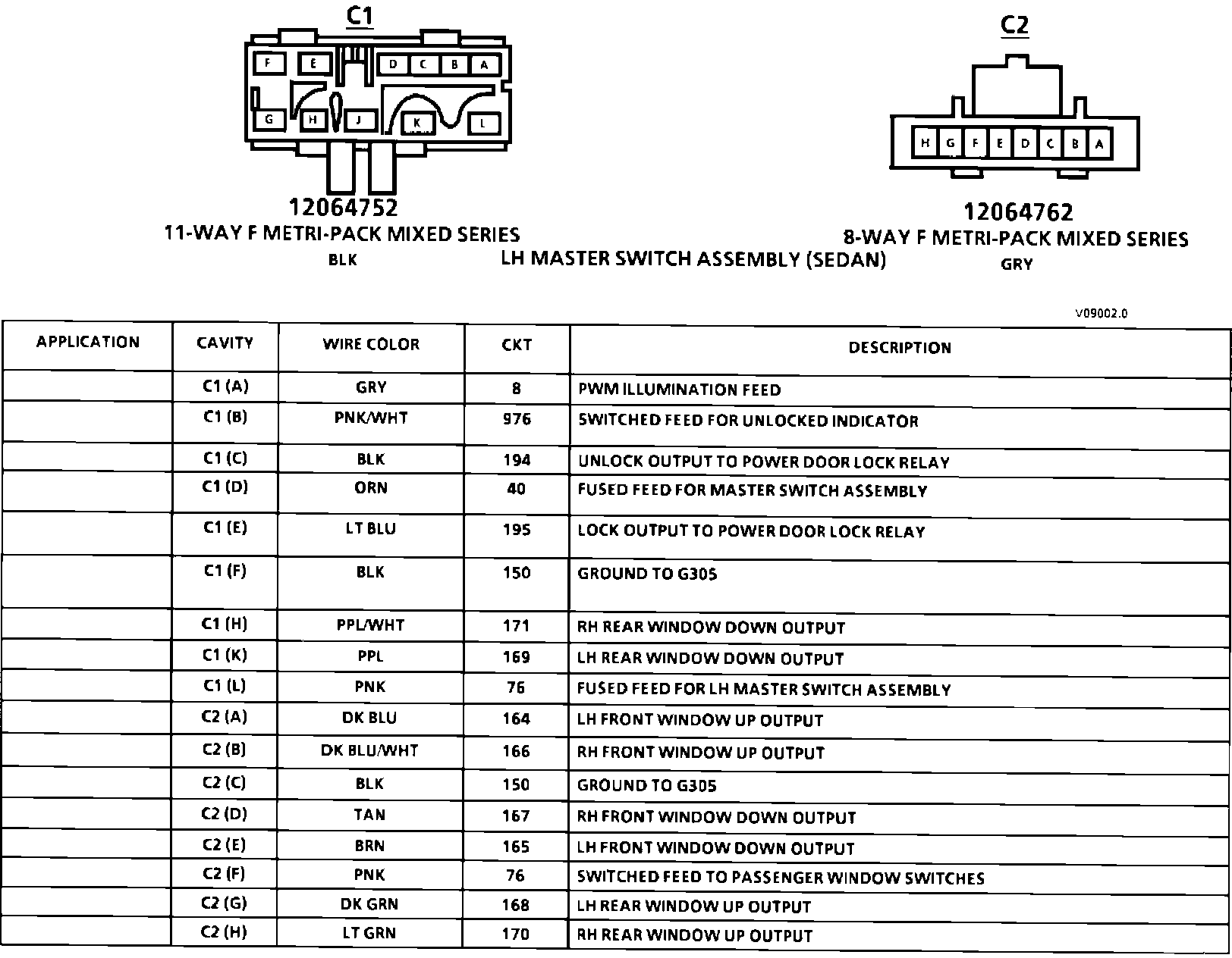 LH Master Switch Assembly Connector Face (Sedan):