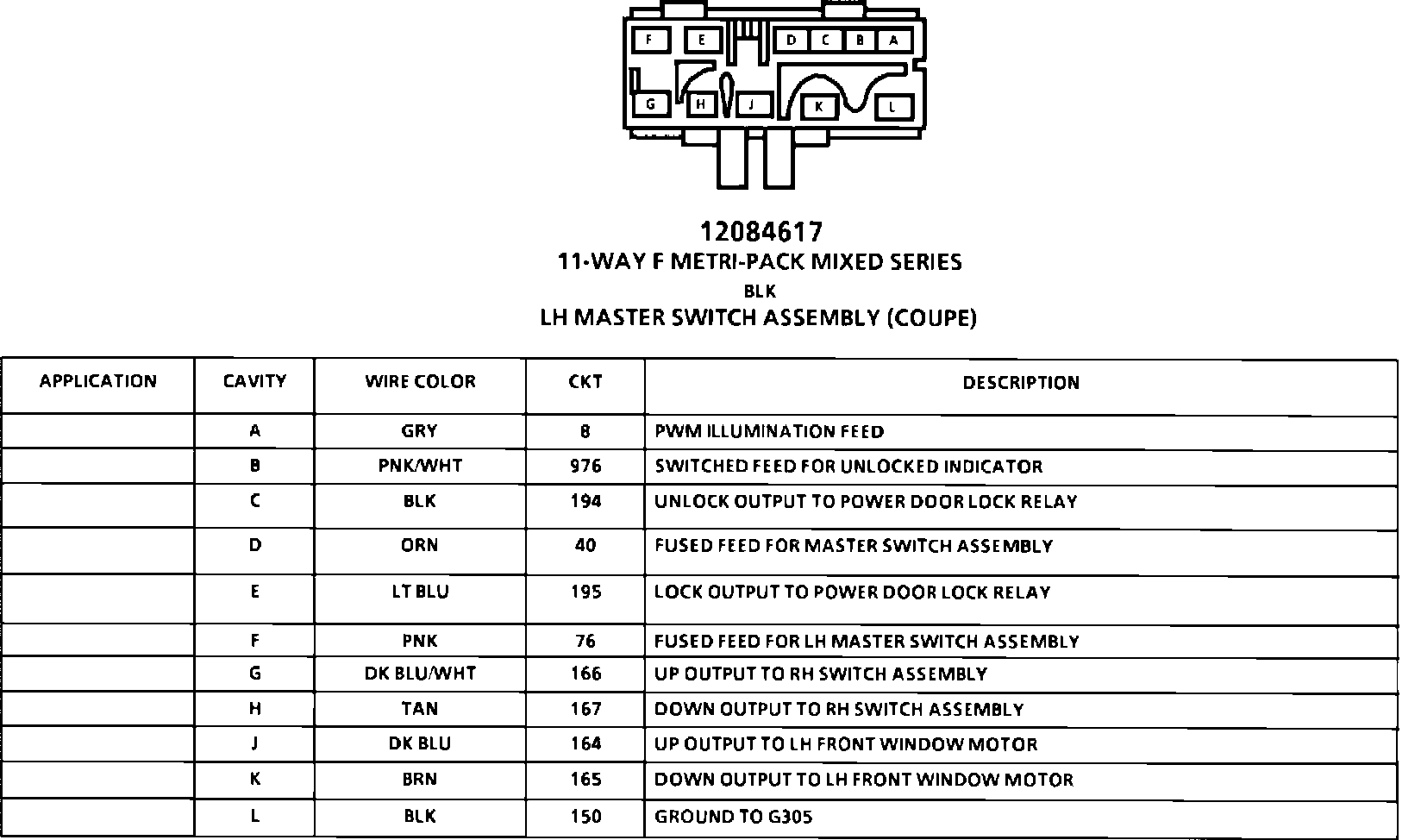 LH Master Switch Assembly Connector Face (Coupe):