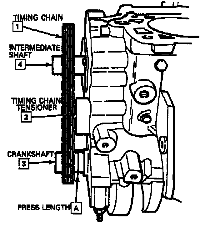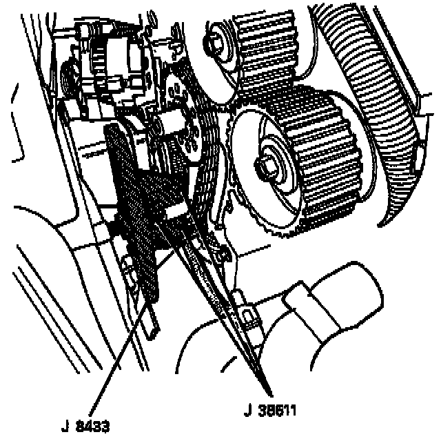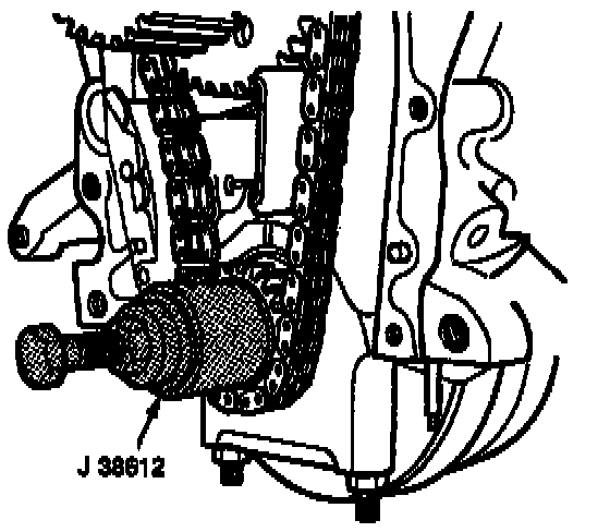 5. Timing chain, crankshaft sprocket, and intermediate shaft sprocket as an assembly, using J-8433 and J-38611 on crankshaft sprocket.