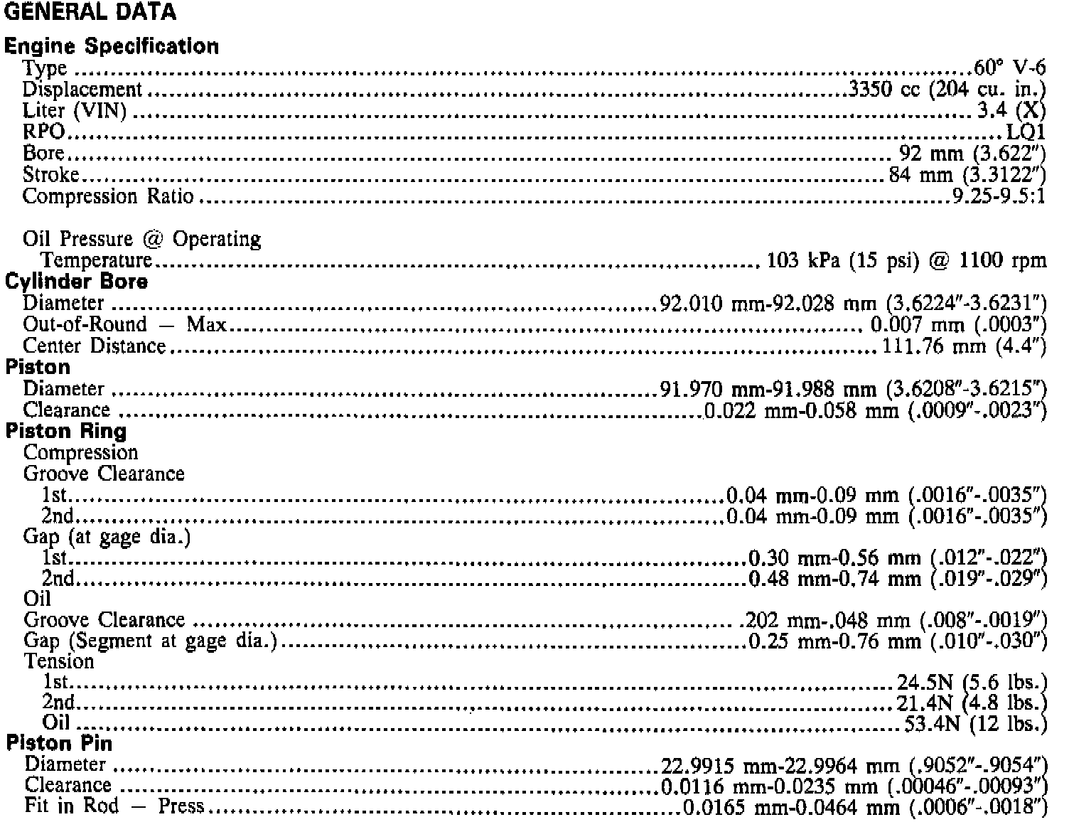 Cutlass Supreme FWD V6-204 3.4L DOHC