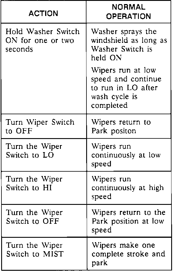 Wiper/Washer System Check Chart: