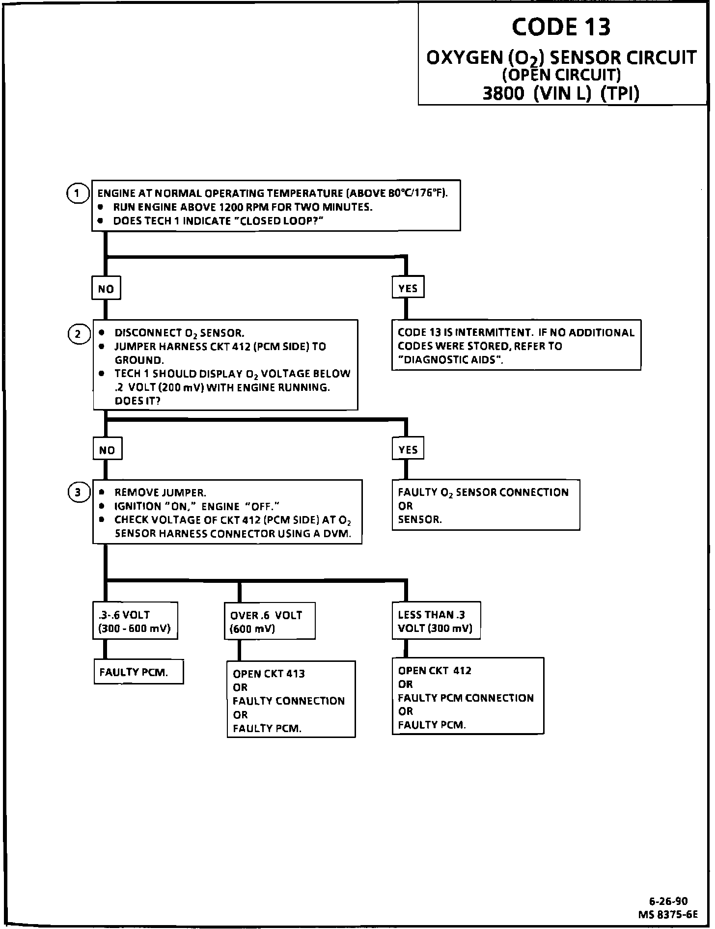 3. In doing this test use only a high impedance digital volt ohmmeter. This test checks the continuity of CKTs 412 and 413. If CKT 413 is open the PCM voltage on CKT 412 will be over 0.6 volt (600 mV).