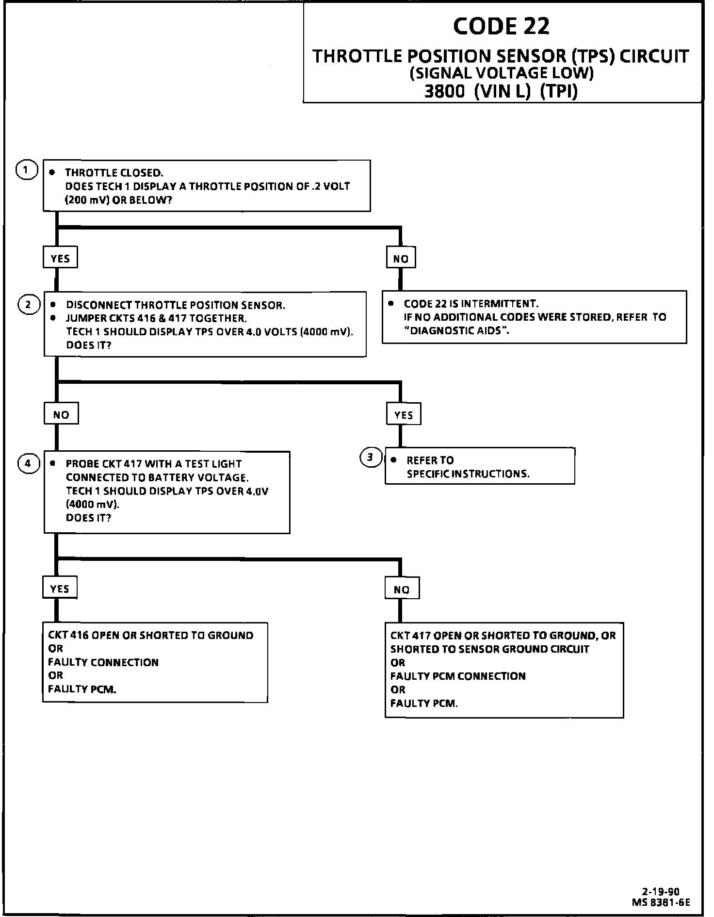 ^ An open or short to ground in CKTs 416 or 417 will result in a Code 22.