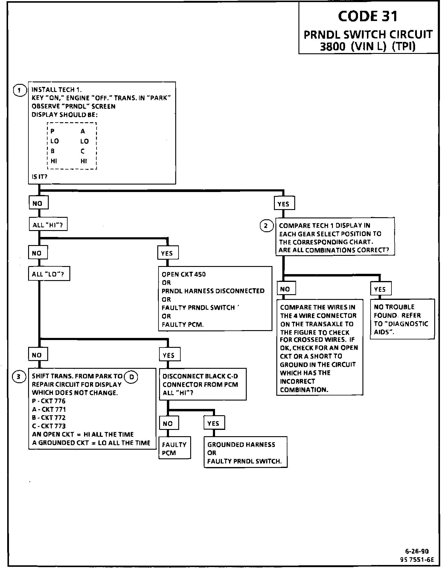 Numbers below refer to circled numbers on the diagnostic chart.