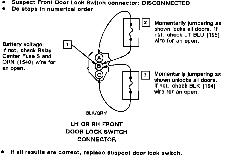 Test G: Front Door Lock Switch Output Test: