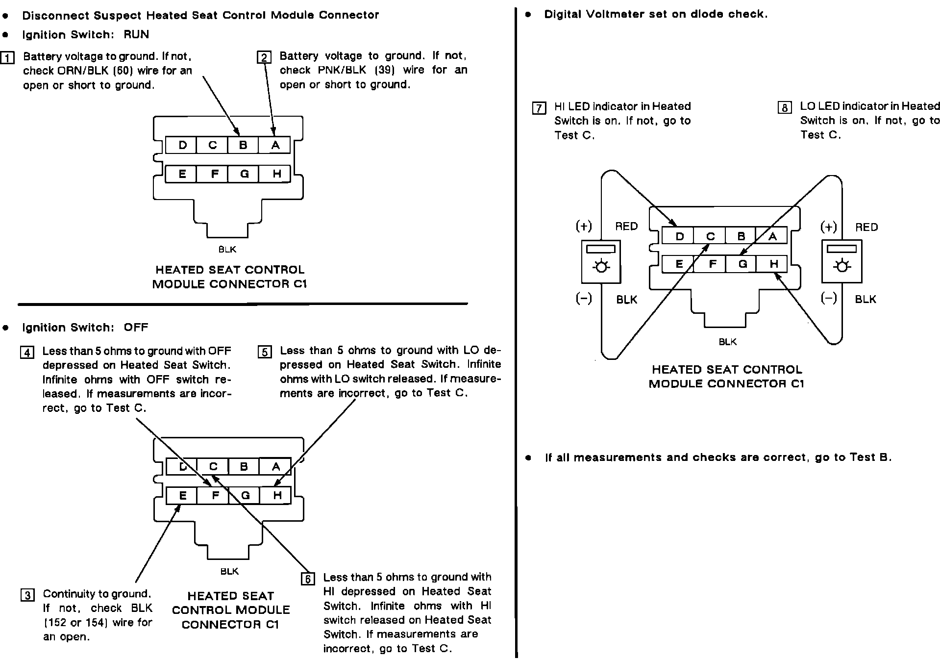 Test A: Heated Seat Control Module Test: